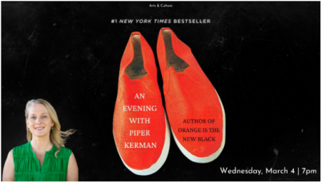 On Wednesday, March 4, at 7 p.m., Kerman will be our speaker at Arts & Culture. Now a prominent crusader for criminal justice and prison reform, she will discuss her own experience and how it relates to mass incarceration in America and increasing state violence. She’ll also detail what she calls “the curious process” of adapting her memoir into the groundbreaking Netflix series and talk about her work teaching writing in a men’s state prison, the subject of her next book.