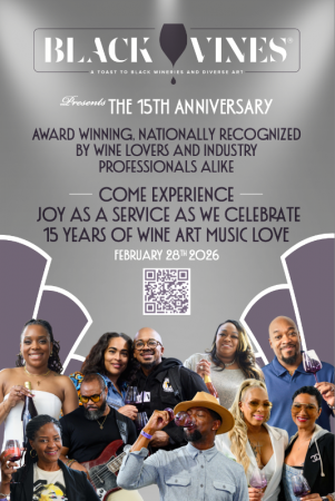 AWARD WINNING, NATIONALLY recognized by wine lovers and industry professionals alike... Join us Saturday, February 28th as we CELEBRATE 15 Years of LOVE, JOY, MUSIC, ART & WINE at Black Vines® Toast to Black Wineries and Diverse Art.