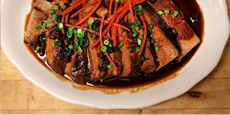 Beef Brisket in Adobo | carrots, raisins, peanut-chile arbol salsa, mustard greens, habañero, lime
